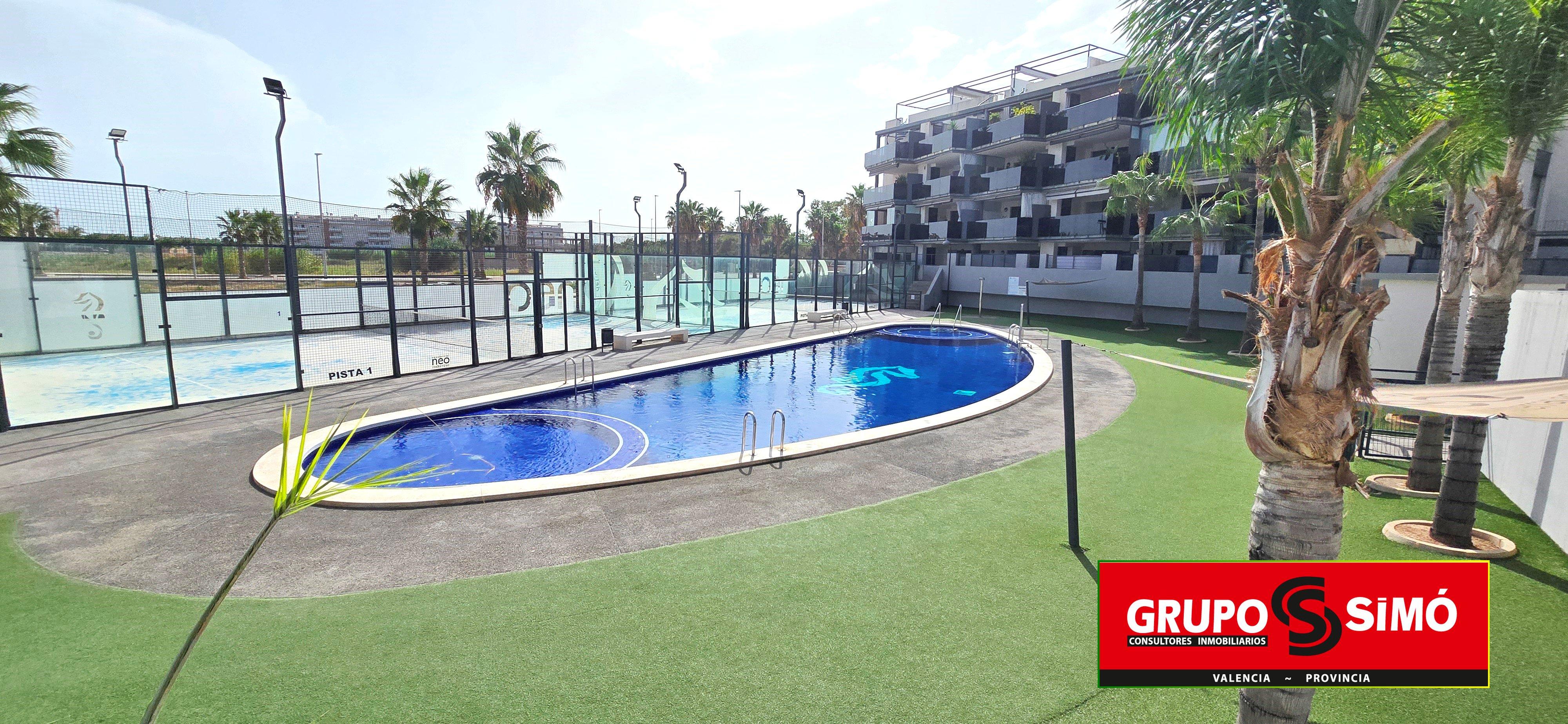 Dispone de zona comunitaria con piscina, pista de padel y parque infantil. Situado a 250 metros de la playa.
